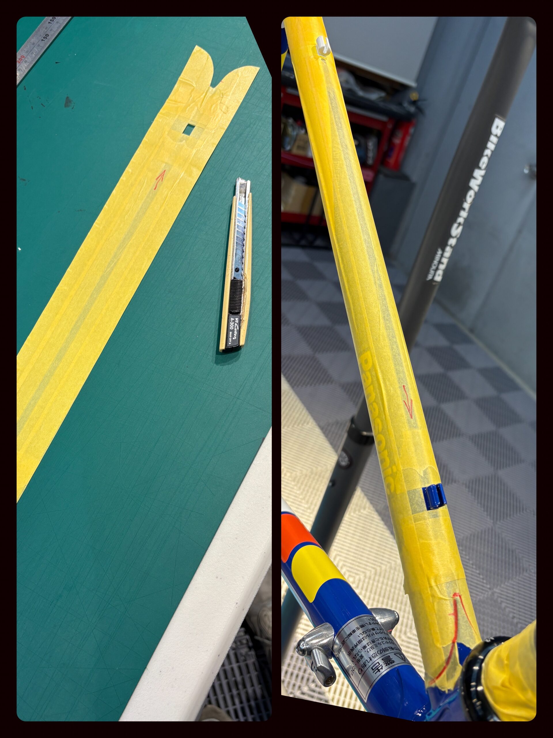 当店の自転車プロテクションフィルム施工は 量産カットではなく、一台ごとにフレームを確認した上で形状に合わせた施工を行います。